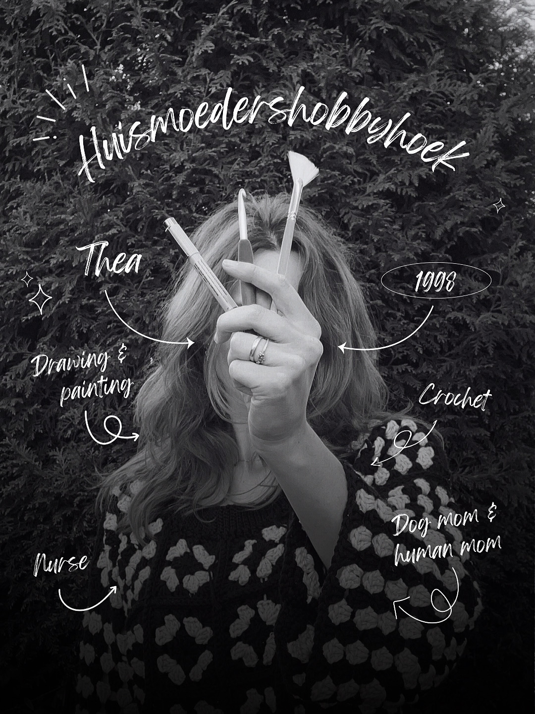 Mijn naam is Thea (1998) en ik woon in Friesland. Creatief bezig zijn is altijd een belangrijk deel van mijn leven geweest. Schilderen en tekenen doe ik al vanaf dat ik klein was, maar het haken herontdekte ik toen ik zwanger was van mijn dochter. Ik haakte mijn allereerste granny square en vanaf dat moment begon de echte verslaving. Ik maakte de ene creatie na de andere, begon met allerlei verschillende projecten en ging zelfs mijn eigen ontwerpen ontwikkelen. Het haken groeide daarmee uit tot een grote passie, naast mijn liefde voor schilderen en tekenen.